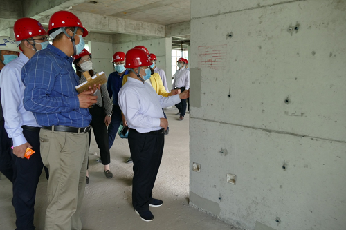在检查过程中,吴振山主席要求施工人员牢记质量意识,践行“品质如天、诚信如山”精神,严格执行标准、严把质量关口。同时,要求一定要牢固树立安全意识和精品意识,以超出客户预期的精品,向广大客户献上天山集团诚挚的作品,为所在城市人居品质提升做贡献。