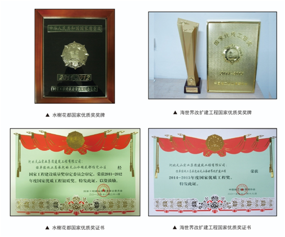 工程竣工不久,天山水榭花都项目相继荣获“2012年度石家庄市兴石杯(市优)工程”、“2012年度河北省建设工程安济杯奖(省优质工程)”及“2011-2012年度国家优质工程银质奖”等奖项。“事事要做精品,合格就是倒退”的理念已融入这队“虎狼之师”的血液中。